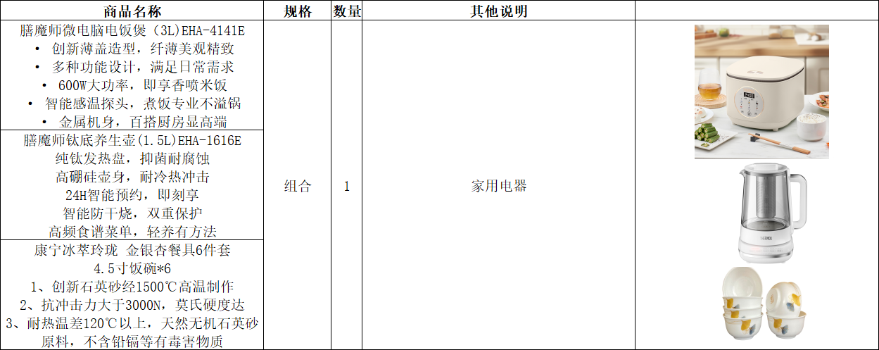 膳魔师电饭煲(3L)EHA-4141+康宁冰萃玲珑金银杏餐具6件套+钛底养生壶(1.5L)EHA-1616E+E+