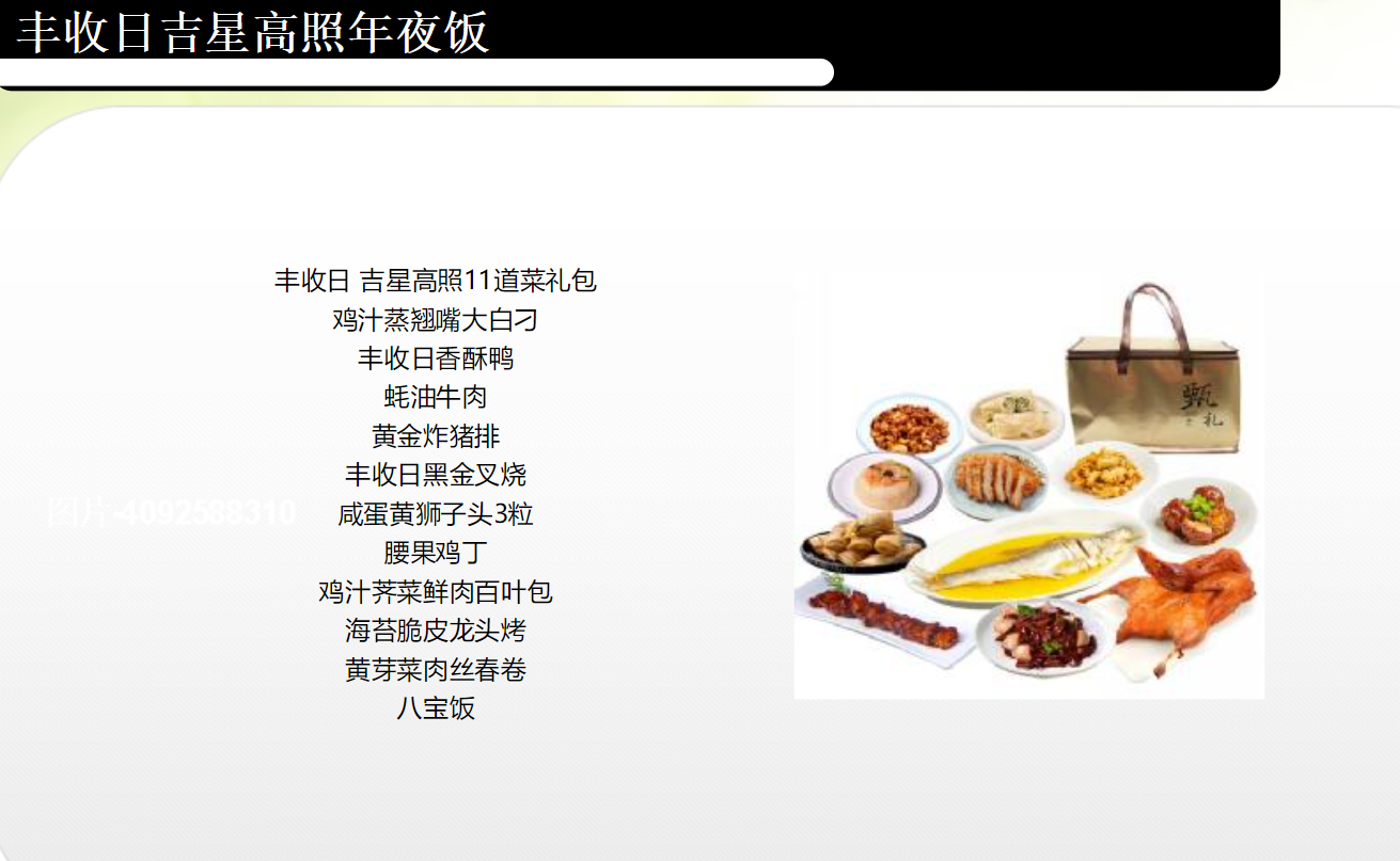 • 商品规格:丰收日吉星高照11道菜礼包